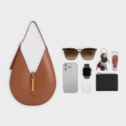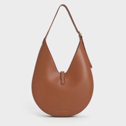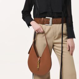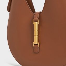 This Cesia hobo bag in chocolate brown features a distinctive metallic buckle, a curved silhouette and a single adjustable strap. Pair it with cropped cardigans and wide-leg trousers to create a relaxed outfit that still feels intentional.