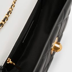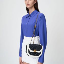 The Avis shoulder bag offers exquisite elegance with a touch of vintage appeal. From the structured geometric shape to the classy quilted finish, every design element in this standout piece is eye-catching. It also features a striking two-tone design that will turn heads wherever it goes. Style the Avis with a backless maxi dress and strappy heeled sandals to create a show-stopping after-dark look.