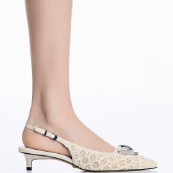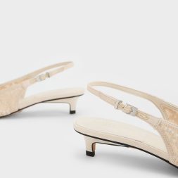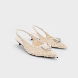Bring your look to the next level with textural elements that add visual interest. These classic pointed-toed Gabine slingback pumps have been given an elegant update with a pretty crochet pattern. In a neutral cream, they will slot right into your everyday wardrobe. Keep things simple with chic tailored separates to let these pumps stand out.