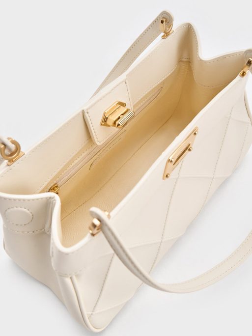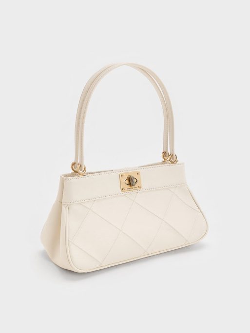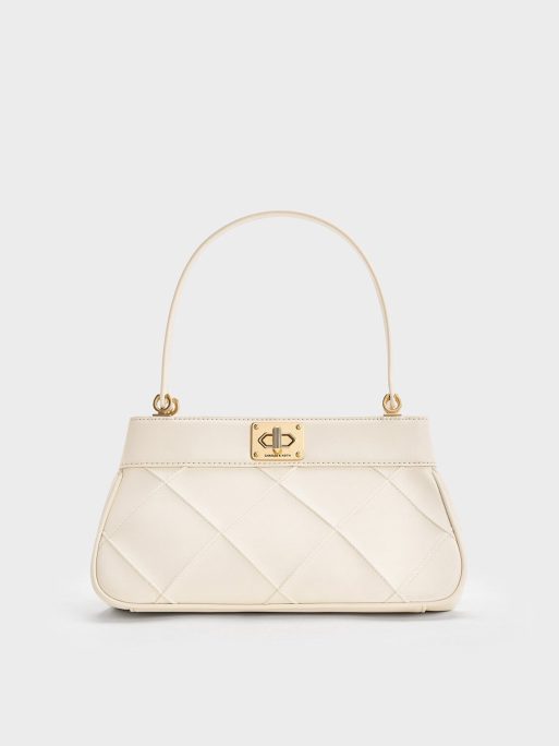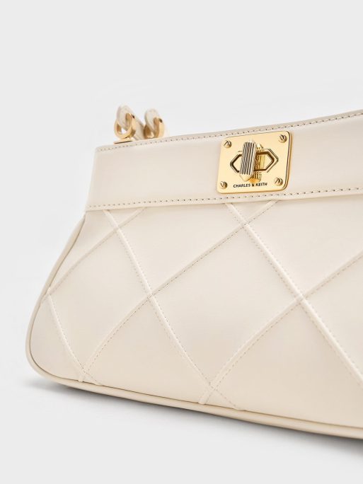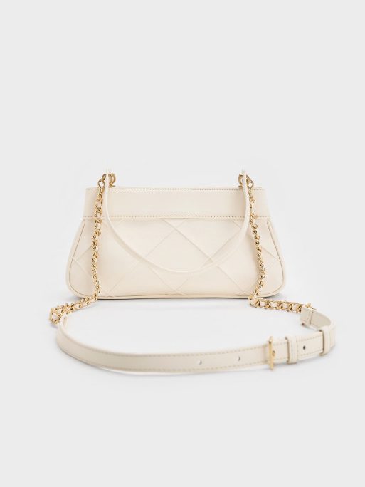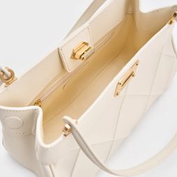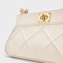 A chic and practical option that effortlessly complements both daytime outfits and evening ensembles, the Eleni shoulder bag is a versatile choice. Its elegant cream finish will add a touch of sophistication to any outfit and ensure timeless appeal, while the quilted texture enhances its minimalist design. This is further enhanced by the gold-toned turn-lock closure, which not only secures the bag but also adds a touch of shine. Carry it by the top handle for a polished look, or utilise the detachable chain strap for hands-free convenience.