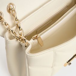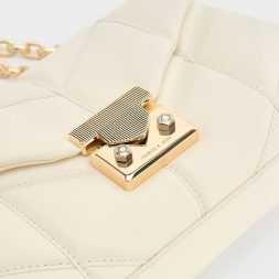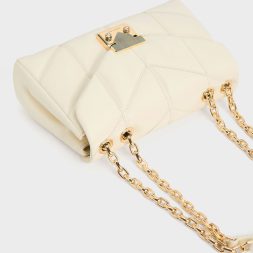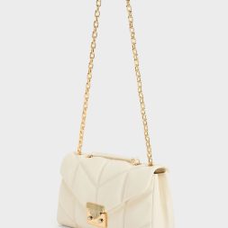 CHARLES & KEITH Eudora Chevron Trapeze Bag – Cream