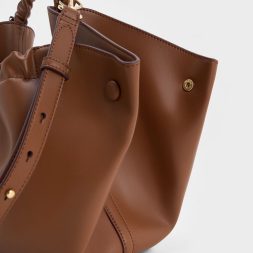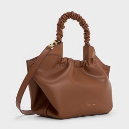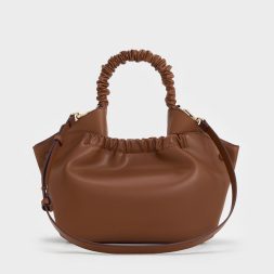 CHARLES & KEITH Eve Ruched-Handle Tote Bag – Chocolate