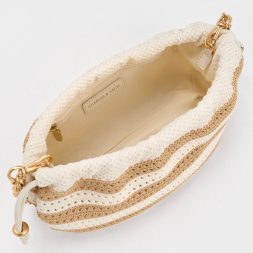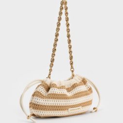 Reminiscent of beach totes, this relaxed-chic interpretation of the classic clutch will become your go-to summer accessory. The dual-toned sandy stripes complement the soft woven texture to create a visually interesting silhouette, while collapsible folds add an element of charming tactility. For a more polished look, opt for the gold-toned chain strap — alternatively, attach the adjustable strap to convert it into a casual shoulder bag.