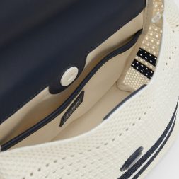 For a striking backpack that is still versatile enough for everyday use, this iteration of the Ida checks all the right boxes. Featuring a soft structure, and fitted with a magnetic front flap, it opens up to a spacious interior that will fit everything you need in a day and more. With navy stripes juxtaposed against a white knitted finish, this nautical-inspired design is perfect for days at the beach and summer vacations.