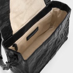 Effortlessly channel the edgy-chic aesthetic with the Matina crossbody bag. The crinkled texture adds a dynamic element to the jet black finish, making it a standout yet versatile piece. With the rest of the exterior unembellished, the classic front-flap style exudes understated elegance. Style it however you like with the adjustable strap, which can be shortened for a shoulder bag effect or lengthened to sling across your body.