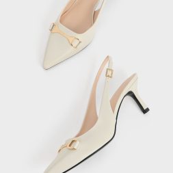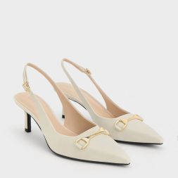 Let these shoes in elegant chalk effortlessly take you from desk to dinner in a style second. From the sleek and polished pointed-toed silhouette to the clean and classic design embellished with a simple metallic accent on the front, these pumps are a great foundational piece to build your workwear wardrobe upon. Another thing we love about these shoes is that they are made with recycled faux leather, making them a great eco-conscious option.