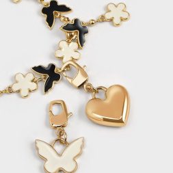 As part of this gift set, this item comes with an exclusive butterfly-and-flower bracelet and charm set that will add a touch of whimsy and feminine allure to your look — wear it as a bracelet or as a charm to accessorise the bag.
