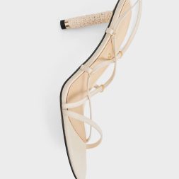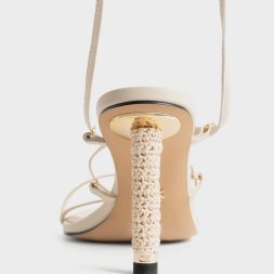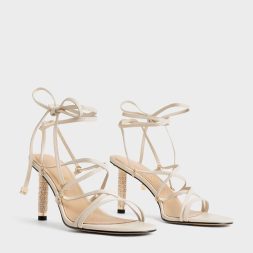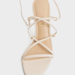 CHARLES & KEITH Strappy Woven-Heel Tie-Around Sandals – Beige