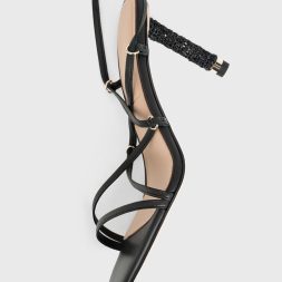 A timeless style staple, strappy sandals are a must-have for the summer. The classic design features tie-around straps that can be adjusted for a flattering, secure fit. In elegant black, the sleek silhouette will streamline your outfits and look timelessly chic. Set on 8.5cm stiletto heels, they also offer an incredible height boost and will help you stand out from the crowd, especially with the subtle yet distinctive woven texture.
