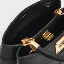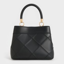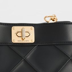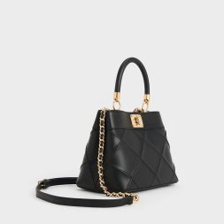This Eleni top handle bag in timeless black exude style, polish, and sophistication. Feauturing an elegant quilted texture that adds a tactile appeal to the classic silhouette, it is also accented by gold-toned hardware like the turn-lock closure, which not only secures the bag but also adds a touch of shine. Carry it by the top handle for a refined look, or attach the chain strap and sling it over your shoulder for hands-free convenience.
