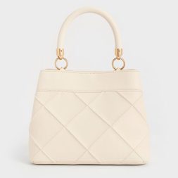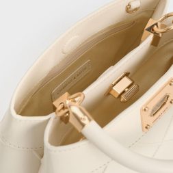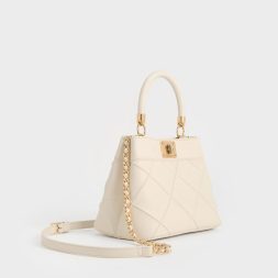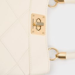 This Eleni top handle bag in lovely cream exude style, polish, and sophistication. Feauturing an elegant quilted texture that adds a tactile appeal to the classic silhouette, it is also accented by gold-toned hardware, like the turn-lock closure, that adds striking touches of shine to the design. Carry it by the top handle for a refined look, or attach the chain strap and sling it over your shoulder for hands-free convenience.