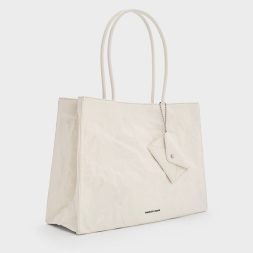 Say goodbye to your standard canvas tote and elevate your everyday look with this extra-large carrier, offering both practicality and stylish elegance. Opening up to a spacious interior, it can accommodate all your daily essentials, from your cosmetic bag to your tumbler bottle and gym attire. Additionally, it features a detachable card holder that will ensure some of your most important valuables remain organised and easily accessible. The distinctive crinkle effect adds a touch of cool sophistication, allowing you to showcase your discerning fashion taste.