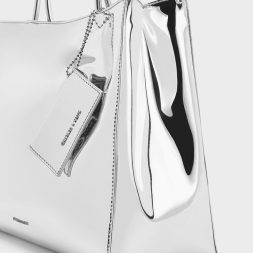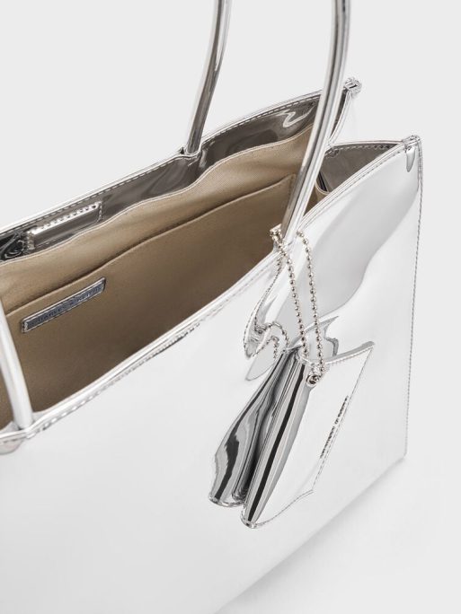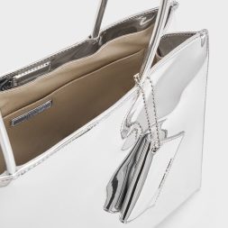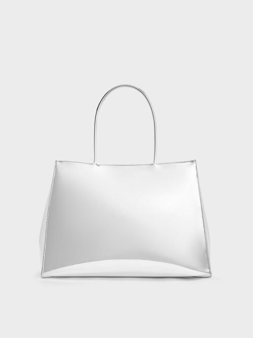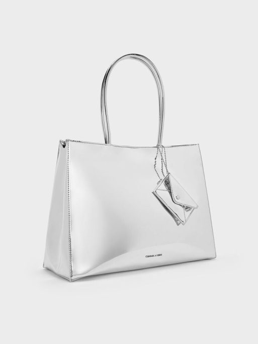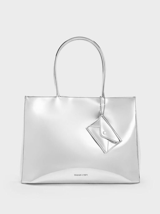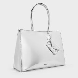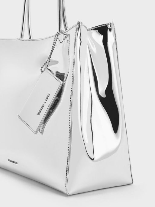 CHARLES & KEITHLarge Matina Metallic Tote Bag – Silver