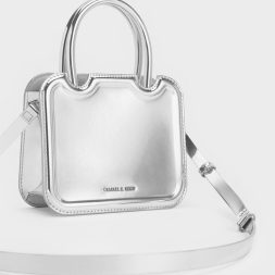 CHARLES & KEITH Perline Metallic Sculptural Top Handle Bag – Silver