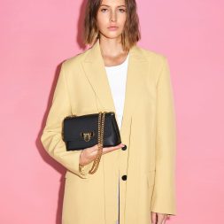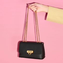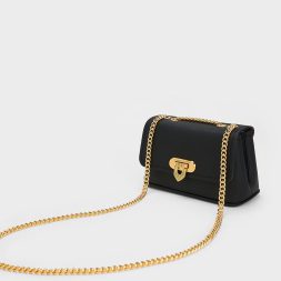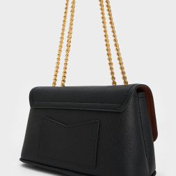 Indulge in timeless elegance with the Alcott chain bag in classic black. This elevated style essential features a sleek rectangular silhouette and a luxurious microsuede finish, exuding sophistication and refinement. The gold-toned metallic hardware and chain handle add a touch of undeniable glamour, elevating the overall aesthetic. Whether you’re heading to a formal event or a casual outing, this bag is the perfect accessory to complete your look. Pair it with a backless top, trendy cargo pants, and chunky boots for an effortlessly chic ensemble.