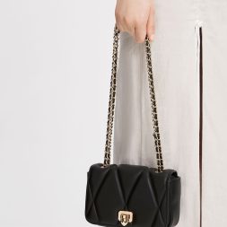 A timeless quilted bag is a must-have in every woman’s wardrobe. This elegant piece boasts a classic rectangular silhouette, accentuated by larger diamond quilts that effortlessly attract attention from afar. In classic black, this bag will seamlessly complement any outfit, whether it’s a casual daytime ensemble or a dressy evening dress. The bonus point lies in its spacious interior, ensuring you can carry all your daily essentials with ease.