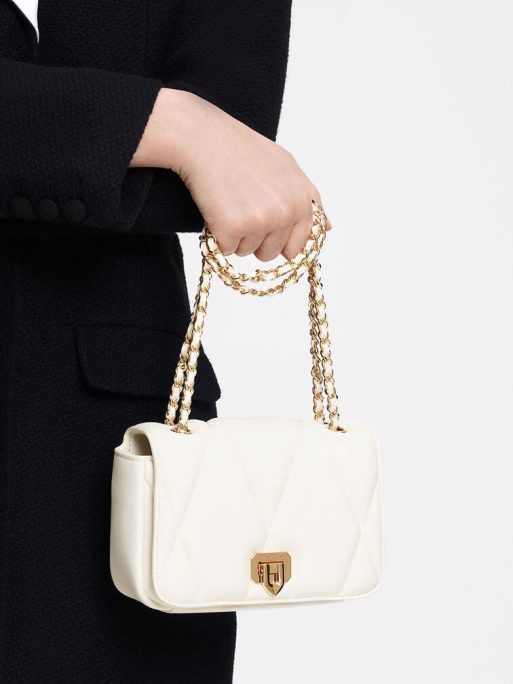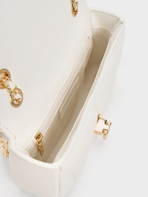 Look polished and put together in an instant with the striking white Arwen bag. Its plush, pillowy texture is delightfully soft to the touch, while the gold-toned hardware adds a touch of shimmering elegance. From every angle, this bag showcases class and refinement. Additionally, the generous interior provides ample space for your everyday essentials, beauty items, and more.