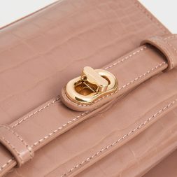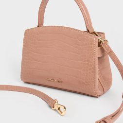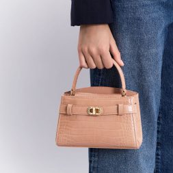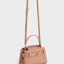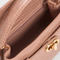 Complete in a gorgeous shade of blush pink, this Aubrielle bag is truly a sight to behold. The soft hue, complemented by a luxurious croc-effect finish, is both feminine and sophisticated. With its generous medium-sized interior, this bag will fit your daily essentials with ease while exuding sophistication. For a hands-free option, clip on the adjustable strap to transform it into a chic shoulder bag.
