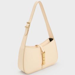 Our Cesia shoulder bag comes in a beige colourway that will slot in seamlessly with your pared-back neutrals. It features the recognisable gold-tone metallic accent across the body and is fitted with a convenient magnetic closure. Simply adjust the shoulder strap to find your desired drop.