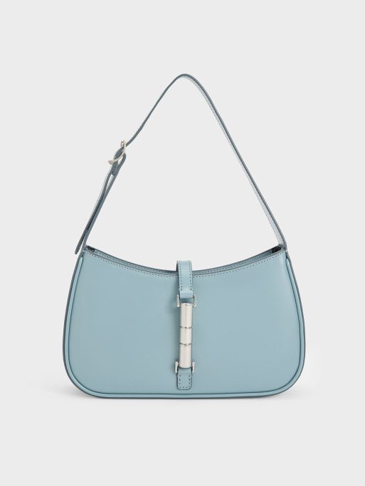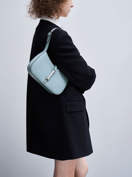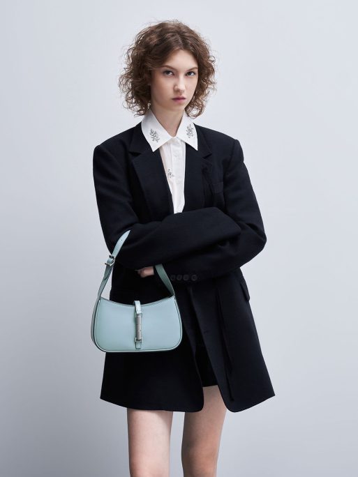 To add a cool pop of colour to your winter look, this iteration of the Cesia shoulder bag is perfect. The slate blue finish makes a stunning pairing with the new-and-improved magnetic metallic accent, creating a sophisticated silhouette that will elevate any outfit. With a minimal design, this piece&rquos;s rectangular shape and shoulder bag style is effortlessly wearable. Complete with an adjustable shoulder strap, this chic bag can be customised to your preferred drop length.