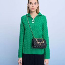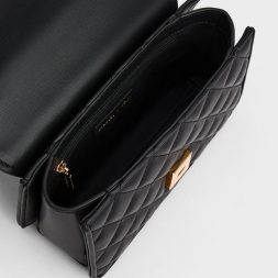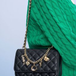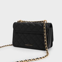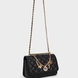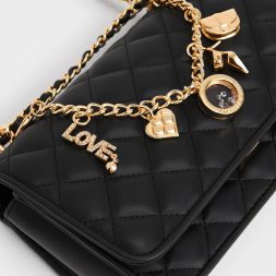 There is a reason why a black bag never stops being popular — it is flattering, stylish, and versatile. This quilted clutch possesses an air of sophistication, whilst the one-of-a-kind chain handle features unique charms that are representative of our brand. Style this bag with an evening gown and tie-around sandals.