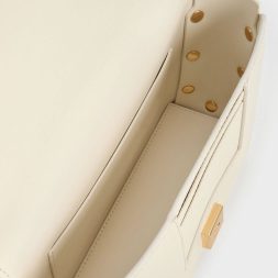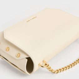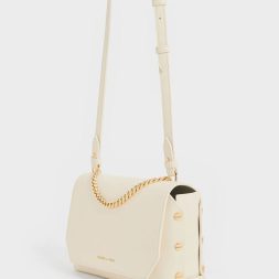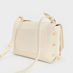 Polished with an edgy twist, the Clea bag is an essential in the city girl’s wardrobe. The classic front-flap silhouette is kept minimally embellished to let the sides shine – gold-toned screws add a utilitarian element to the more feminine style. To embolden the clean cream finish, metallic chain-links adorn the front for a striking detail. With the versatility of an adjustable strap, wear this as a chic shoulder bag or across the body for a more laidback vibe.
