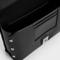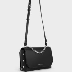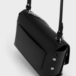 An edgier interpretation of the classic chain-handle carrier, the Clea bag is sophisticated and city-chic. The front-flap silhouette is clean and minimal in sleek black, with silver-toned screws adorning the sides for a subtly utilitarian feel. Metallic chain-links add boldness to the feminine style, which will elevate any outfit you pair this with. Complete with an adjustable strap, this chic carrier will meet all your styling needs with ease.