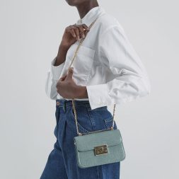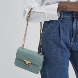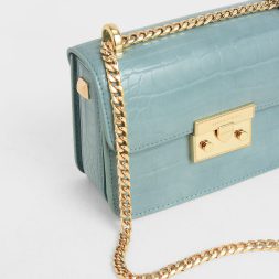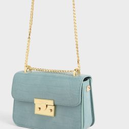 Keep it classy and casual with this powder-blue chain strap crossbody bag. Boasting an exquisite mock-croc finish, there’s no better way to show off your feminine side than to pair this with a little white dress.