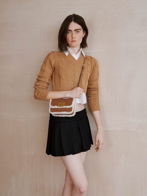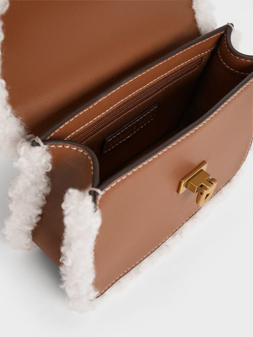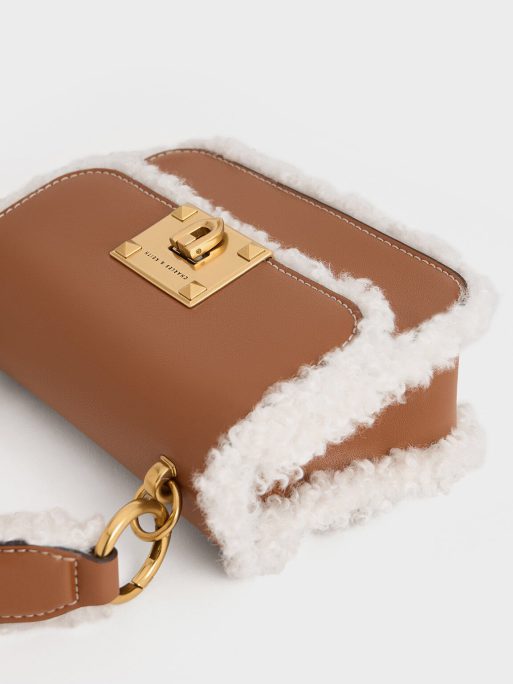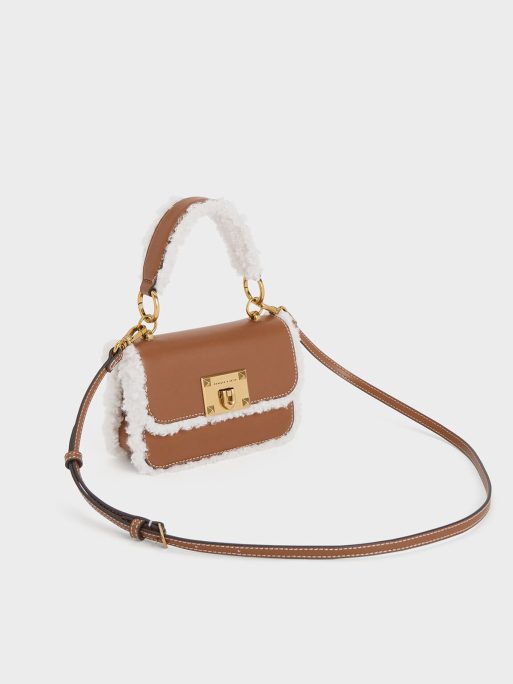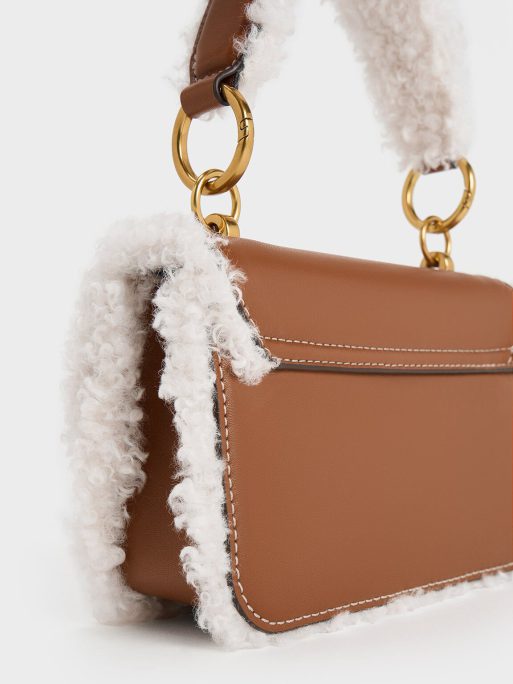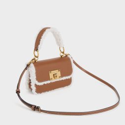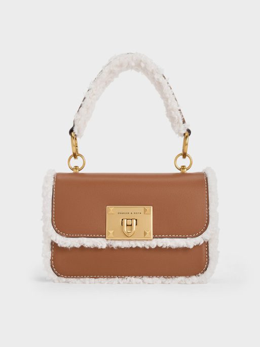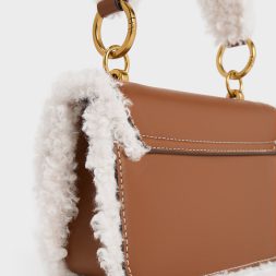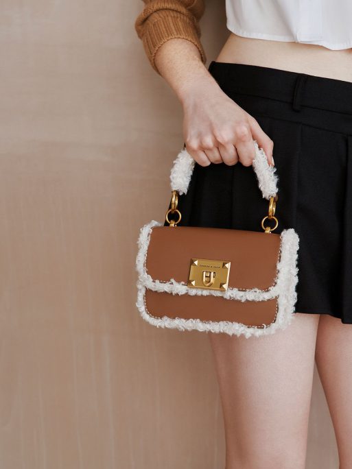This season-appropriate spin on our classic structured top-handle bag is the perfect addition to your cold-weather wardrobe. Retaining all the same elements we want in an everyday bag, like a sturdy top handle, secure push-lock closure, and spacious interior, this carrier features a white fur-trim that adds texture and tactility to the design, elevating it to a statement piece.