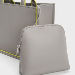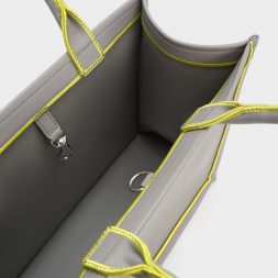Upgrade your style by trading your everyday office tote for the Jump contrast-trim bag. Featuring a sleek grey finish and contrasting lime green trim and tag, this chic accessory strikes the perfect balance between playfulness and sophistication. The elongated double handles offer ease of wear while the bag’s spacious interior boasts plenty of room for your essentials, work documents, laptop and more. The Jump contrast-trim bag is functional style at its best.