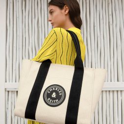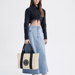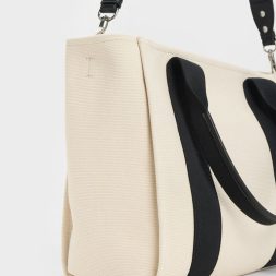 When selecting a summer tote bag, prioritising functionality and versatility is essential. This contrast-trim tote bag checks all the right boxes. Firstly, it boasts ample space to hold all your essentials for a day out at the beach or a sightseeing adventure, seamlessly transitioning to alfresco dinners in the evening. The striking combination of blue and beige canvas creates a visually appealing contrast, while still maintaining the ability to complement a wide range of summer outfits, including vibrant and eclectic prints.