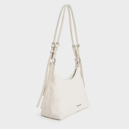 C&K Lark Crinkle-Effect Hobo Bag – Cream