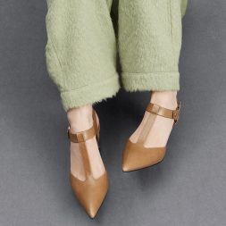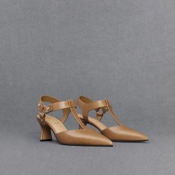 C&K Leather Buckled T-Bar Pumps – Taupe