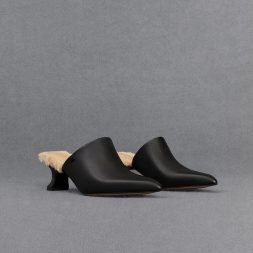 Infuse stylish tactility into your outfits with this pair of leather mules. The sharp pointed-toed style looks ultra sleek in black, creating a sophisticated profile that will elevate any ensemble. To add a contrasting element, fur trim softens the look for a distinctive touch. Propped on sculptural heels that enhance the understated yet visually interesting silhouette, these mules are the perfect pair to spruce up your rotation with.