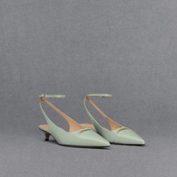 Meet the perfect brunch date shoes. The charming mint-green finish enhances the timeless elegance of the pointed-toed silhouette, creating a sophisticated profile that will instantly elevate your ensembles. Peek-a-boo cut-outs on the vamps lend the pumps a feminine appeal that is further enhanced by dainty ankle-straps, which come together to provide a flattering fit. Set on kitten heels for a subtle height boost, pair these with skirts and dresses for the ultimate weekend look.