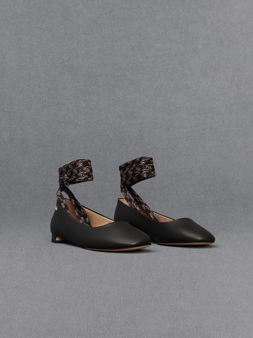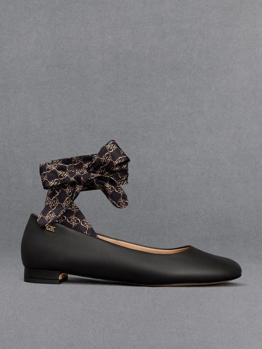 Embrace the popular balletcore aesthetic with these tie-around ballet flats. They feature ankle-wrap ribbons adorned with the brand new CHARLES & KEITH monogram all over, adding a distinctive and eye-catching element to the elegant design. Set on low block heels, they are optimal for walking and will be perfect for all kinds of occasions. Style them with cropped trousers or midi skirts to let them shine in all their glory.