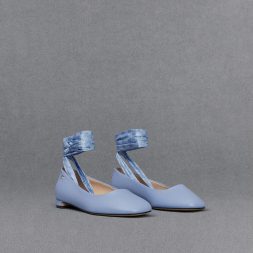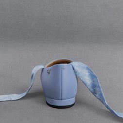 Stay one step ahead of the fashion curve with these tie-around ballet flats, combining two of the season’s biggest trends: balletcore and pale blue. They feature ankle-wrap ribbons with an eye-catching monogram print, adding a distinctive quality to the classic shoe style. Set on low block heels, they are perfect for all-day wear and will add an understated pop of colour to your everyday ensemble.