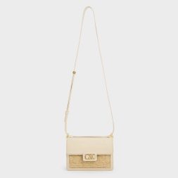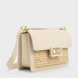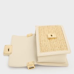 Travel light this summer with this leather and raffia boxy bag. This cute yet polished carrier juxtaposes a rustic woven texture against smooth calf leather — it will stand out wherever you go. Made compact for convenience, it will hold all your essentials with ease. In neutral-toned beige, it is versatile enough to complement most outfits. Adjust the shoulder strap to your preference, or remove it entirely to transform this chic bag into a clutch.