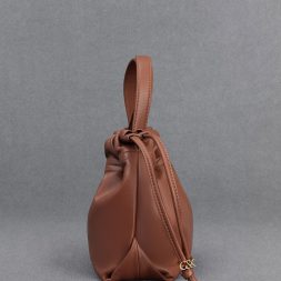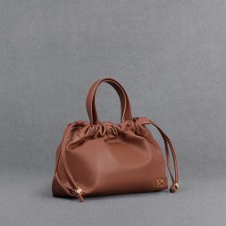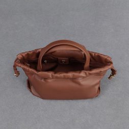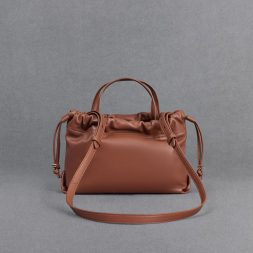 Made for casual days out and city exploration, this bag in tasteful cognac is a worthy addition to any collection. Crafted from luxurious nappa sheep leather, it is made to last. Bonus points for the ruched drawstring detail that adds visual interest, while the magnetic closure offers easy access. Clip on the shoulder strap to carry it as a crossbody bag.