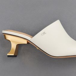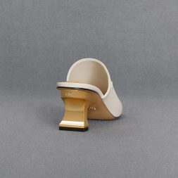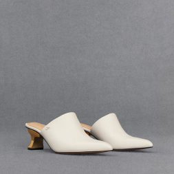 Both wearable and stylish, this pair of leather mules does it all. Made out of luxurious sheep leather, the sleek pointed-toed profile is enhanced by the clean chalk finish. The slip-on mule style makes this an effortlessly chic, wearable pair that you will want to reach for every day. Elevated on metallic sculptural heels for a visually interesting touch, let these understated mules add flair to your ensembles.