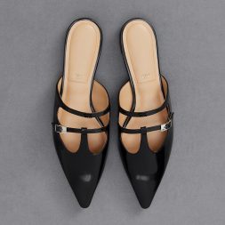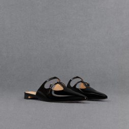 C&K Leather T-Bar Double-Strap Mules – Black Box