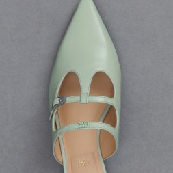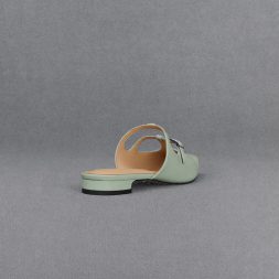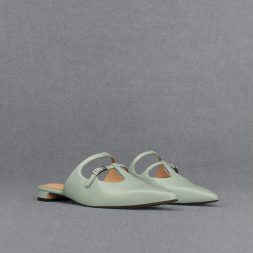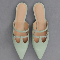 C&K Leather T-Bar Double-Strap Mules – Mint Green