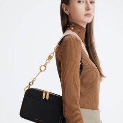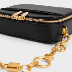 Whatever the occasion, you can trust this crossbody bag to serve up sophisticated style. If you are looking for versatility and elegance, then look no further — this bag has got more than enough to spare with its timeless black colour, gold-tone chunky chain accent and matching two-way zip closure. Plus, it comes with an additional shoulder strap for flexibility, so you know that this is the one for you. Try it with a linen dress and strappy heeled sandals for a graceful ensemble.