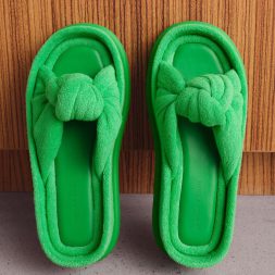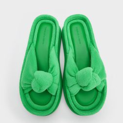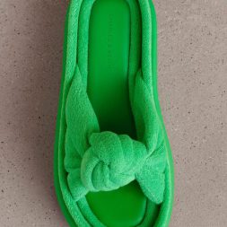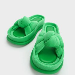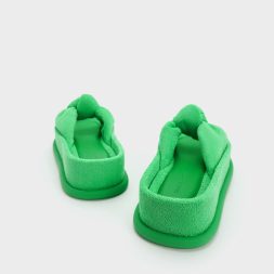 Prep for summer with these Loey slides. The striking green finish will add a vibrant touch to any ensemble you pair them with, while the tactility of the soft fabric finish lends textural interest to the casual style. Featuring knotted strap details, the distinctive yet wearable design makes them the perfect addition to your hot-weather wardrobe. Plus, its breathable, open-toed silhouette ensures comfort on balmy days.