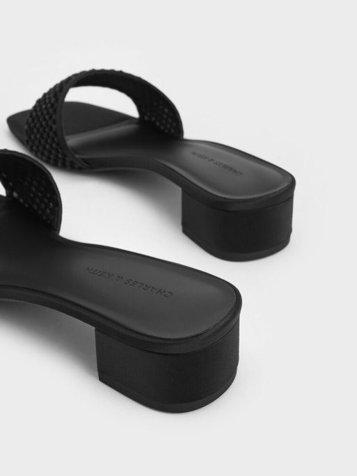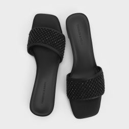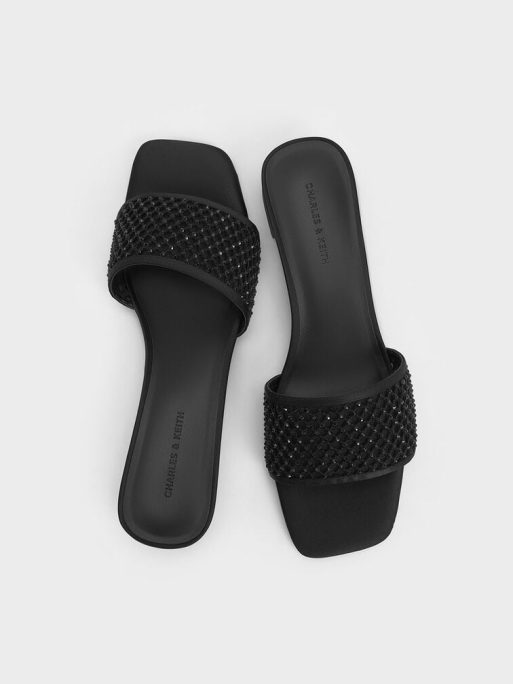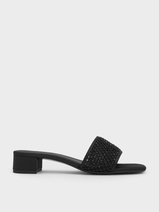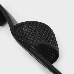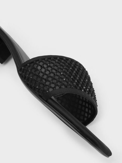 Wearable yet elegant, these mules do it all. The slip-on design features mesh panels across the vamps that are adorned with crystal embellishments. The subtle tactility of the mesh texture adds dimension to the sparkly black finish, which elevates the casual shoe style. Set on low block heels for a flattering lift to the frame, these mules will put the perfect finishing touch on your ensembles.