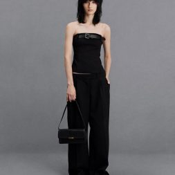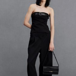 A classic bag style, reinterpreted in mesh. This all-black carrier will bring a distinctive, visually striking element to your look. Adorned with a metallic detail etched with our brand logo, it completes this standout bag with a hint of sophisticated shine and allure. Finished with leather trims and an accompanying leather strap, this piece can be worn casually on your shoulder or used as a clutch for formal events.