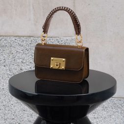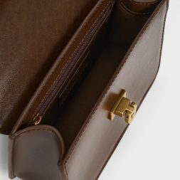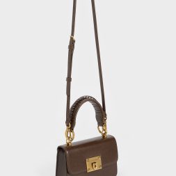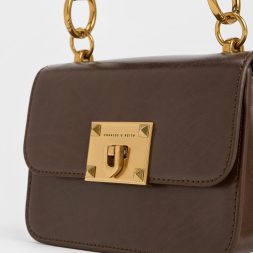 This timeless dark brown version of our metallic turn-lock bag is an investment piece that you can carry for all occasions. Featuring gold-toned hardware and a metallic turn-lock closure that opens up into a surprisingly spacious interior, this classy and compact piece can hold all your must-have items with ease. Carry yours by the top handle, or simply clip on the adjustable strap to turn it into a crossbody bag so you can go hands-free.