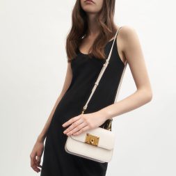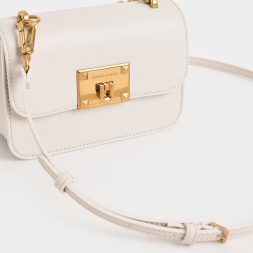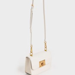 This chic ivory bag is an investment piece you can carry for all occasions. Pristine, classy and compact, this beauty comes with a metallic turn-lock closure that keeps a lid on all your belongings so they stay secure. For your next evening date, let it be the finishing touch to a puff-sleeve midi dress and espadrille mules. Carry it on its own or with the detachable strap that can be adjusted to your desired length.