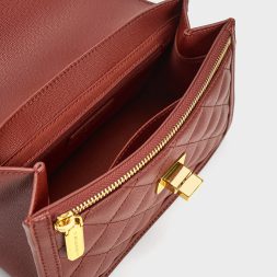 Exude elegance and sophistication from every angle when you have our Micaela quilted bag in an alluring brick-red by your side. A metallic turn-lock closure allows you to stash away your personal belongings in this medium-sized bag safely while having easy access to them. Whether you choose to wear it single-strapped or double-strapped, this statement piece will help you stand out wherever you go.