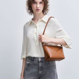 From the luxurious tan finish to the intricate details, this Midori bag will be a stunning addition to your wardrobe. Featuring eye-catching geometric folds and complementary sculptural knots on the straps, this striking design balances distictive details with a clean, elegant silhouette. Equipped with a zip closure that will keep your valuables secure, it is a stylish and practical carrier that will elevate any outfit you pair it with.
